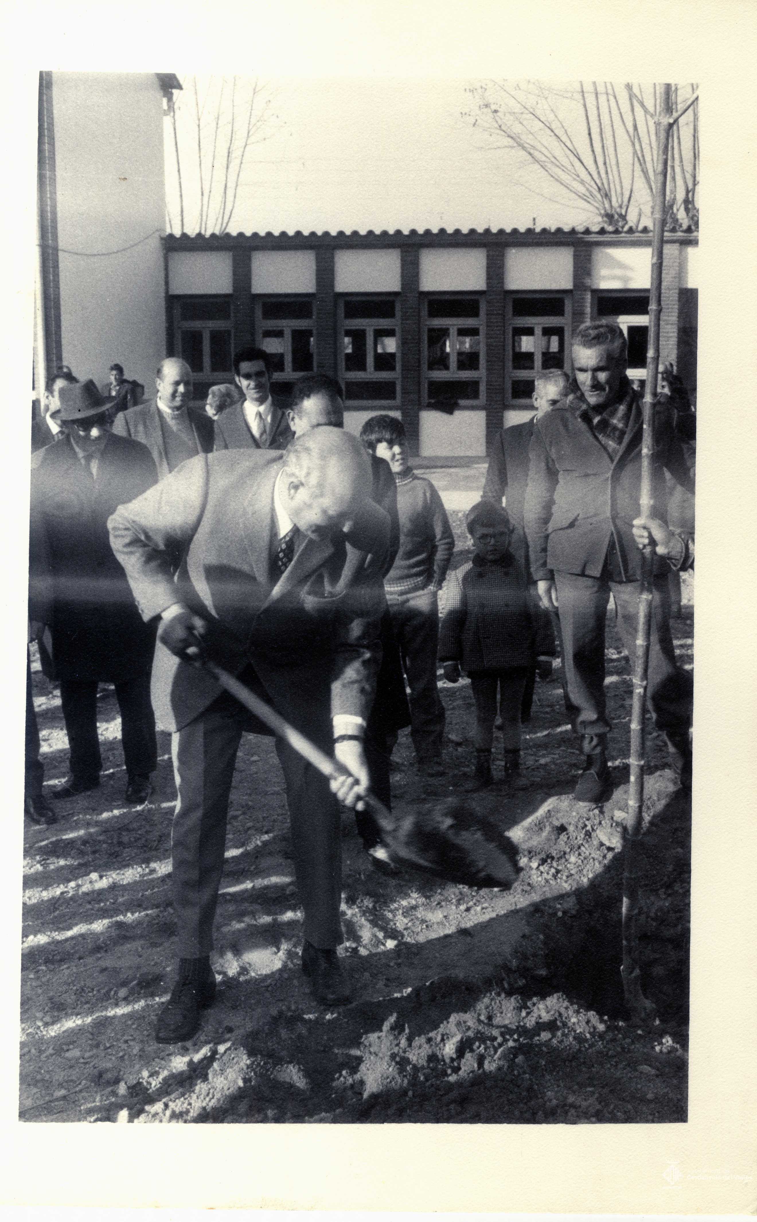 Plantada d'arbres a l'Escola Sant Martí de Cerdanyola del Vallès presidida per l'alcalde Domingo Fatjó Sanmiquel el 30 de març de 1968