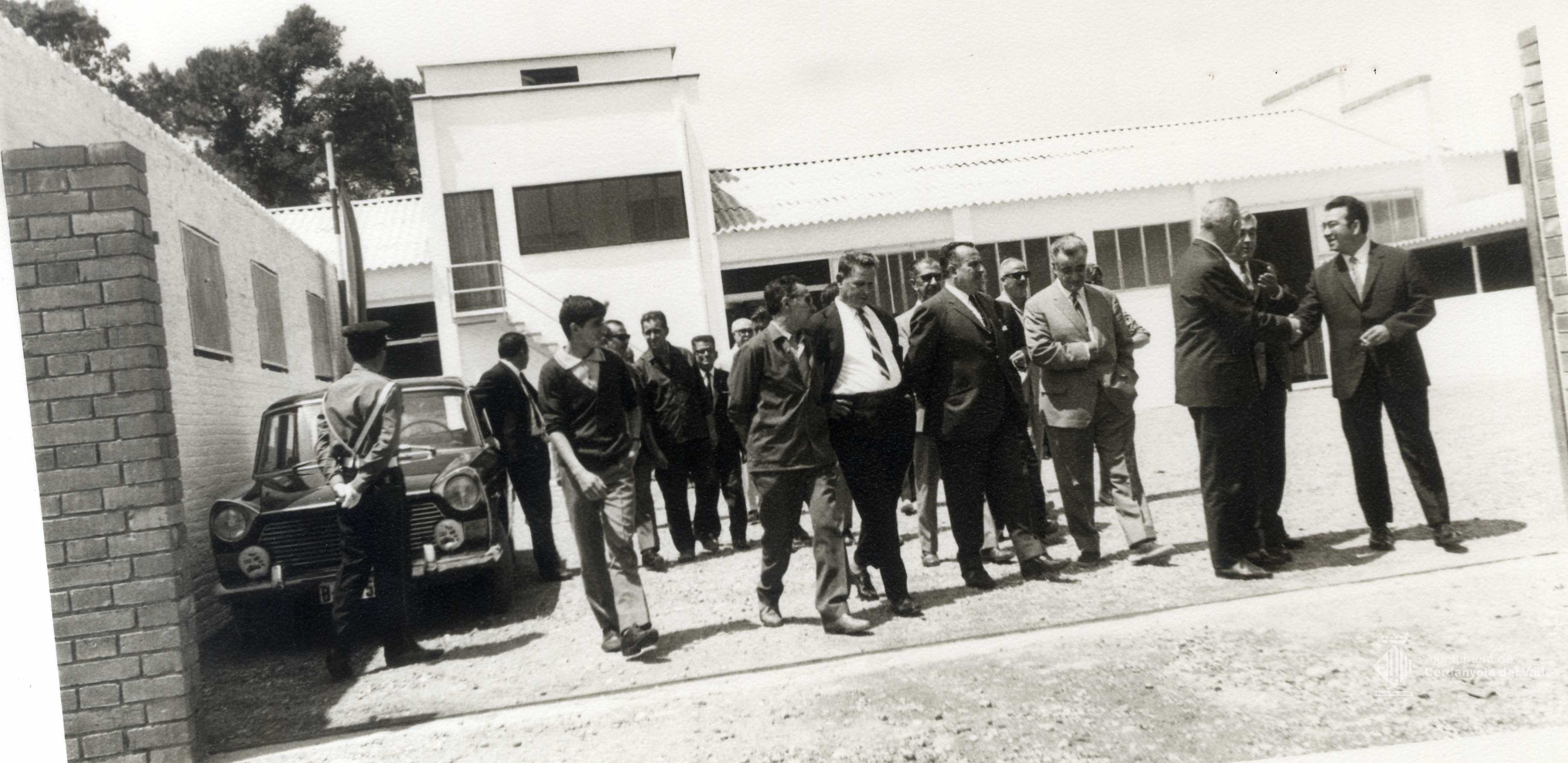 Acte d'inauguració de l'escorxador municipal de Cerdanyola del Vallès presidit per l'alcalde Domingo Fatjó Sanmiquel el 18 de juliol de 1968
