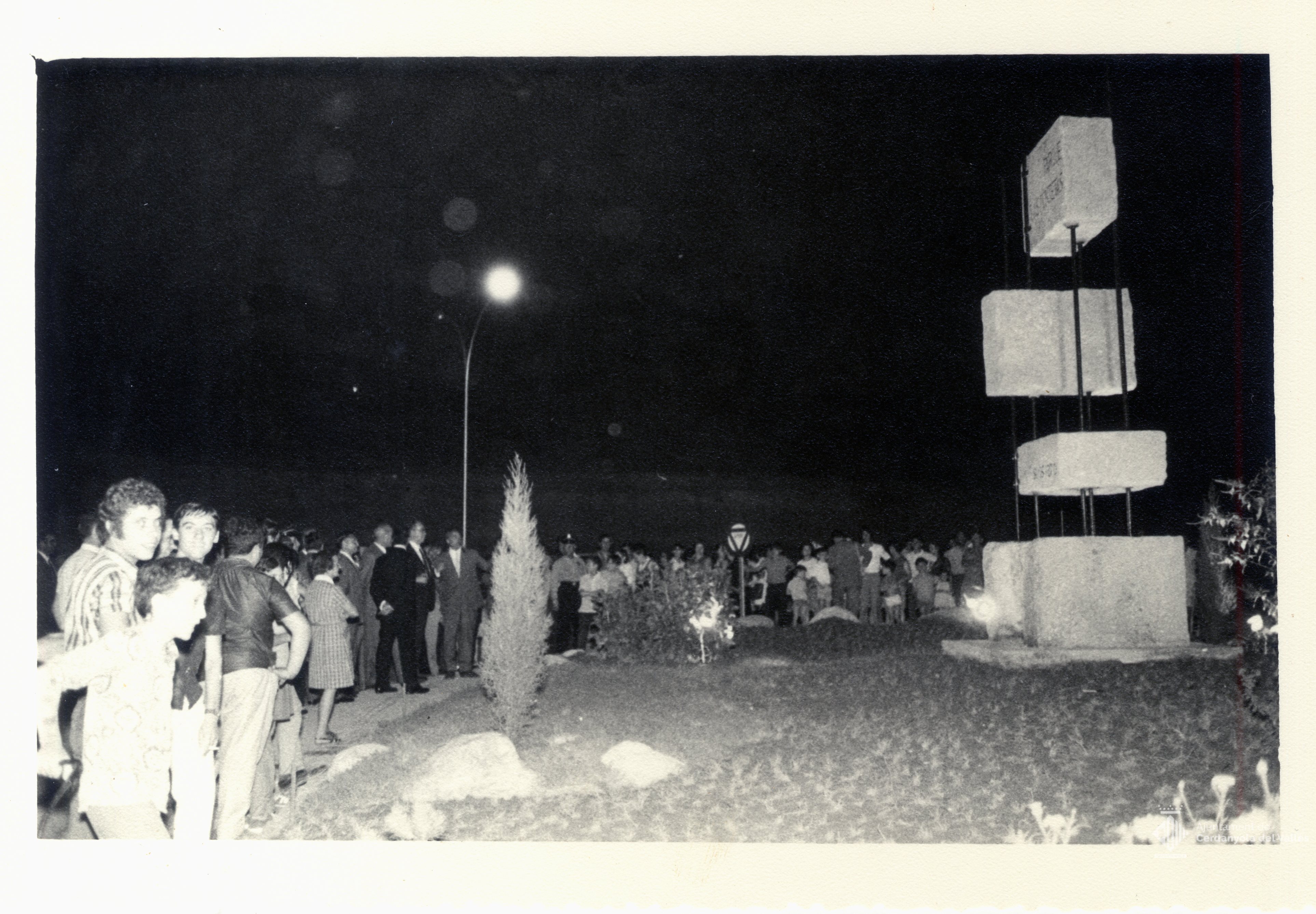 Acte d'inauguració de monument dedicat al Parc de les Fontetes de Cerdanyola del Vallès presidit per l'alcalde Domingo Fatjó Sanmiquel el 1970