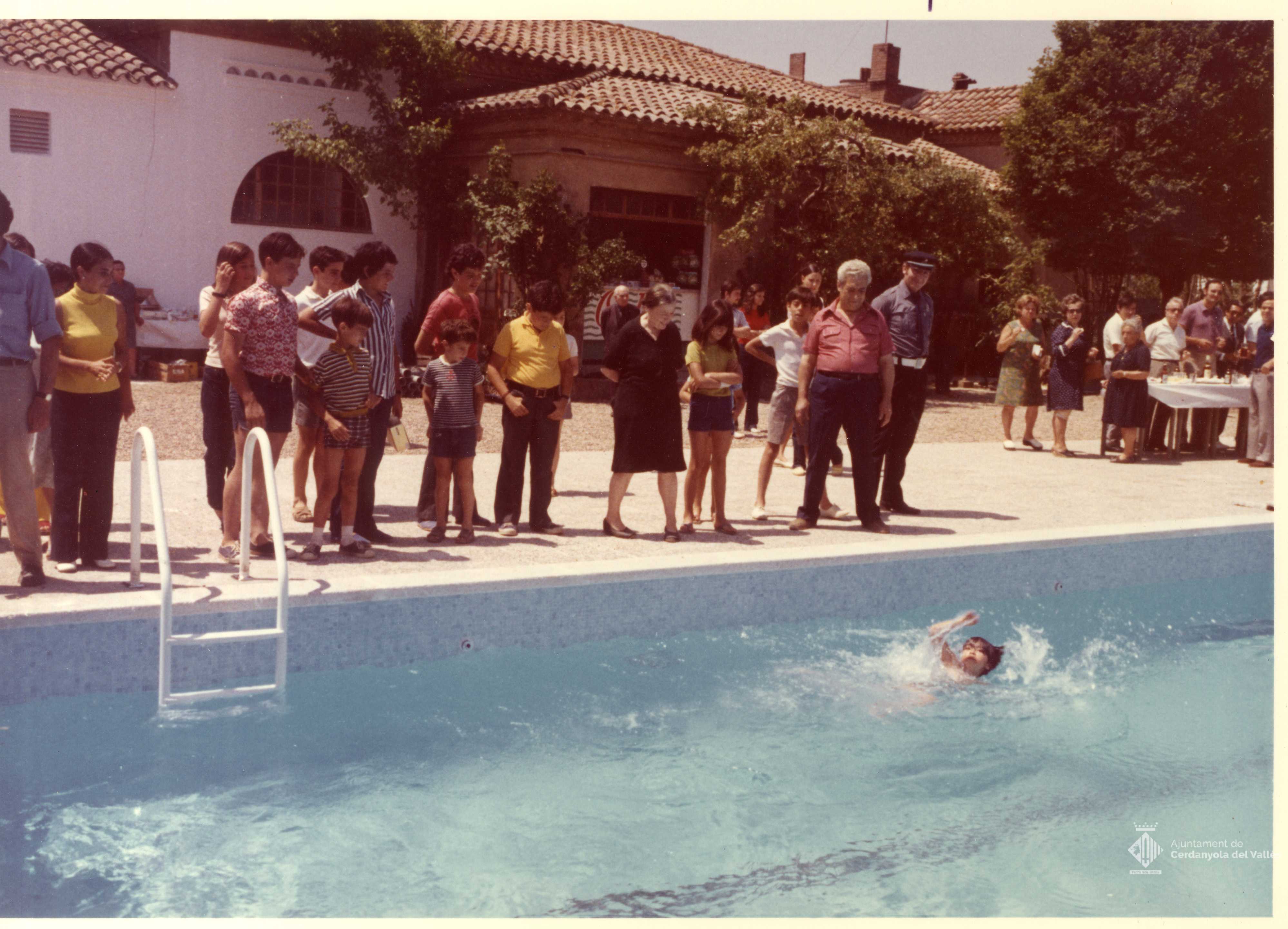 Acte d'inauguració de la piscina municipal de Montflorit de Cerdanyola del Vallès presidit per l'alcalde Domingo Fatjó Sanmiquel el 1973