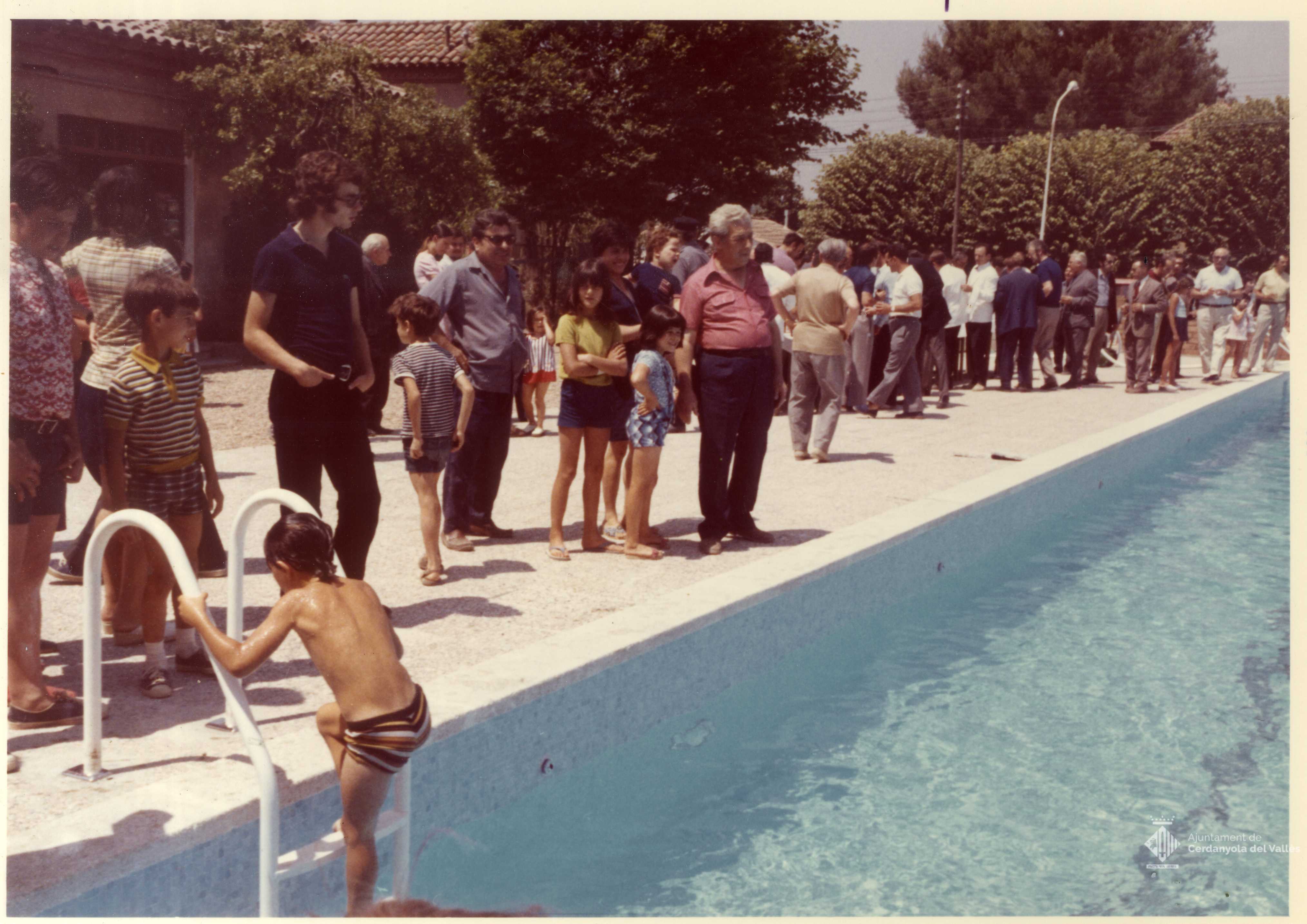 Acte d'inauguració de la piscina municipal de Montflorit de Cerdanyola del Vallès presidit per l'alcalde Domingo Fatjó Sanmiquel el 1973