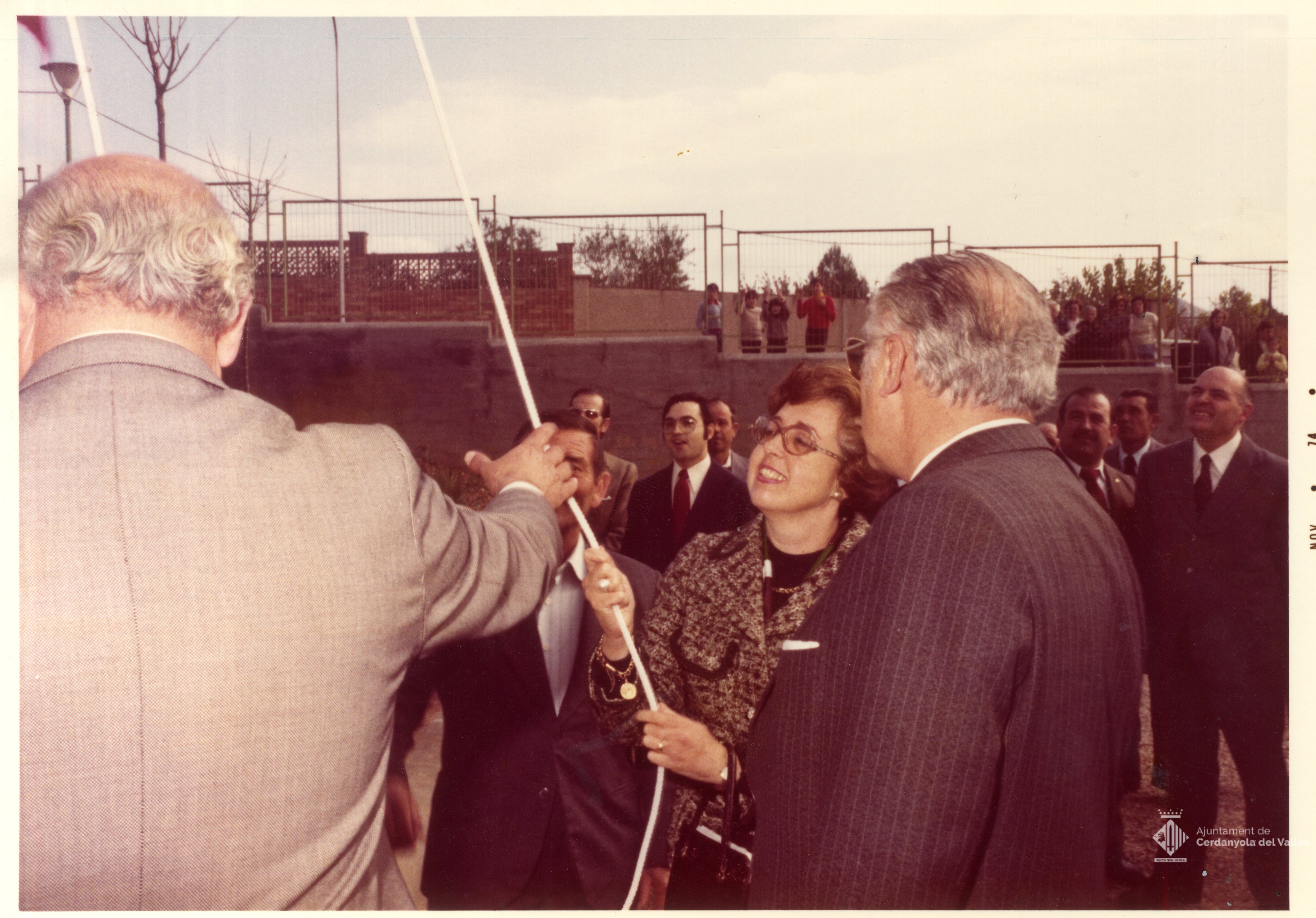 Acte d'inauguració de l'institut Els Gorgs de Cerdanyola del Vallès presidit per l'alcalde Domingo Fatjó Sanmiquel el 14 de març de 1974