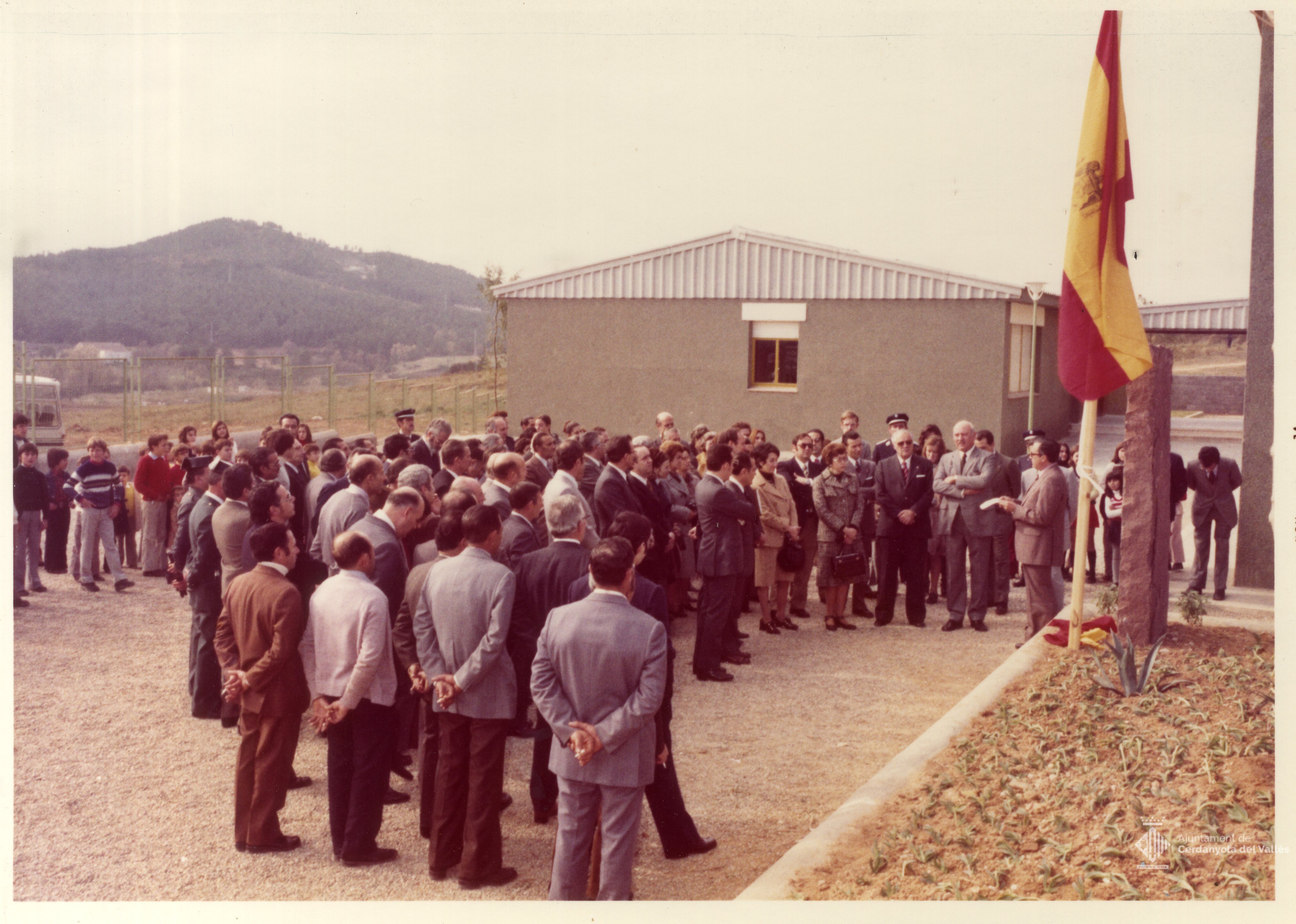 Acte d'inauguració de l'institut Els Gorgs de Cerdanyola del Vallès presidit per l'alcalde Domingo Fatjó Sanmiquel el 14 de març de 1974