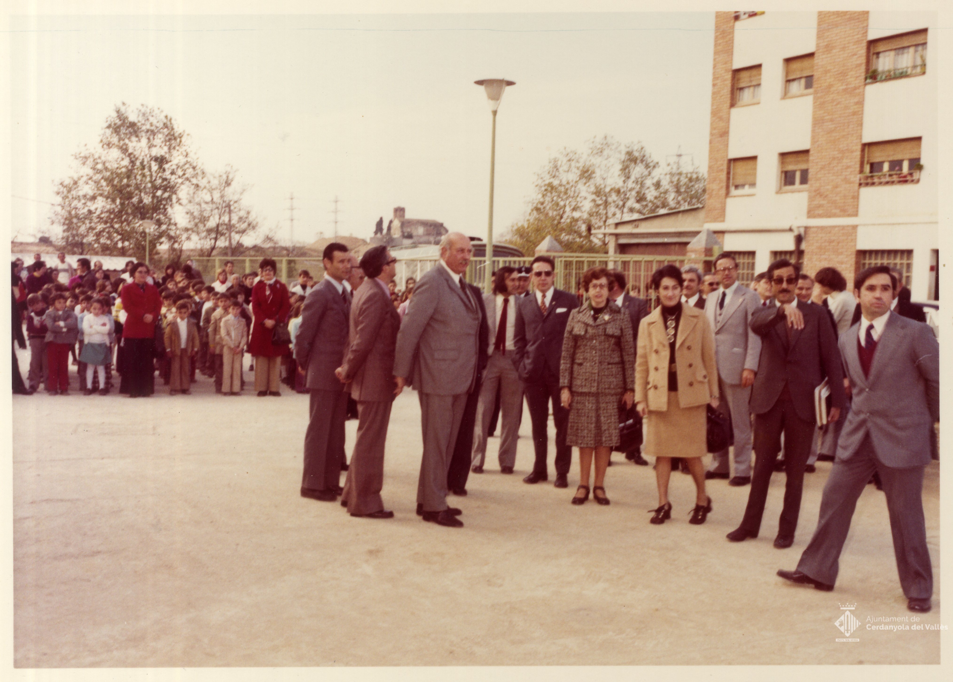 Acte d'inauguració de l'institut Els Gorgs de Cerdanyola del Vallès presidit per l'alcalde Domingo Fatjó Sanmiquel el 14 de març de 1974