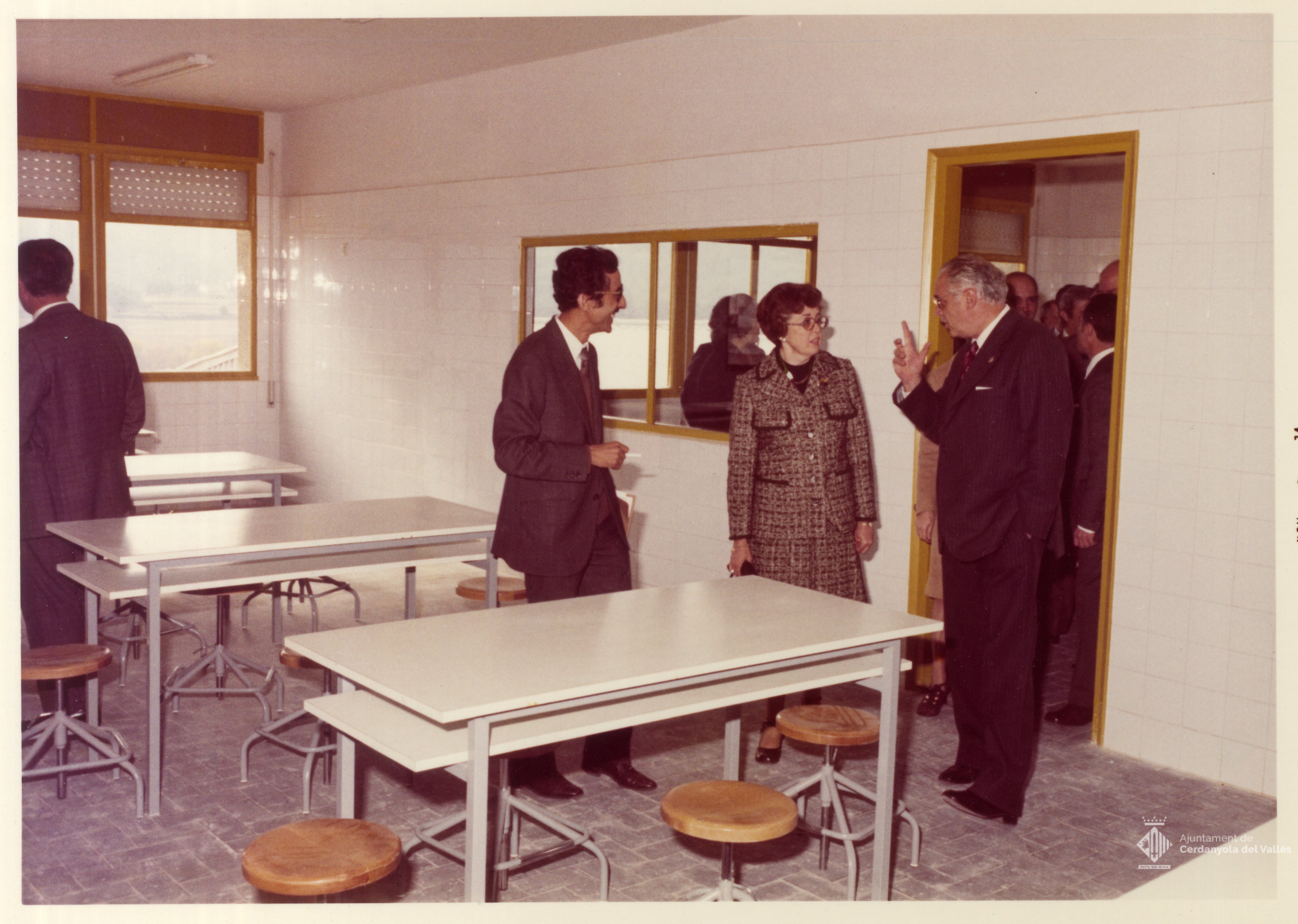 Acte d'inauguració de l'institut Els Gorgs de Cerdanyola del Vallès presidit per l'alcalde Domingo Fatjó Sanmiquel el 14 de març de 1974
