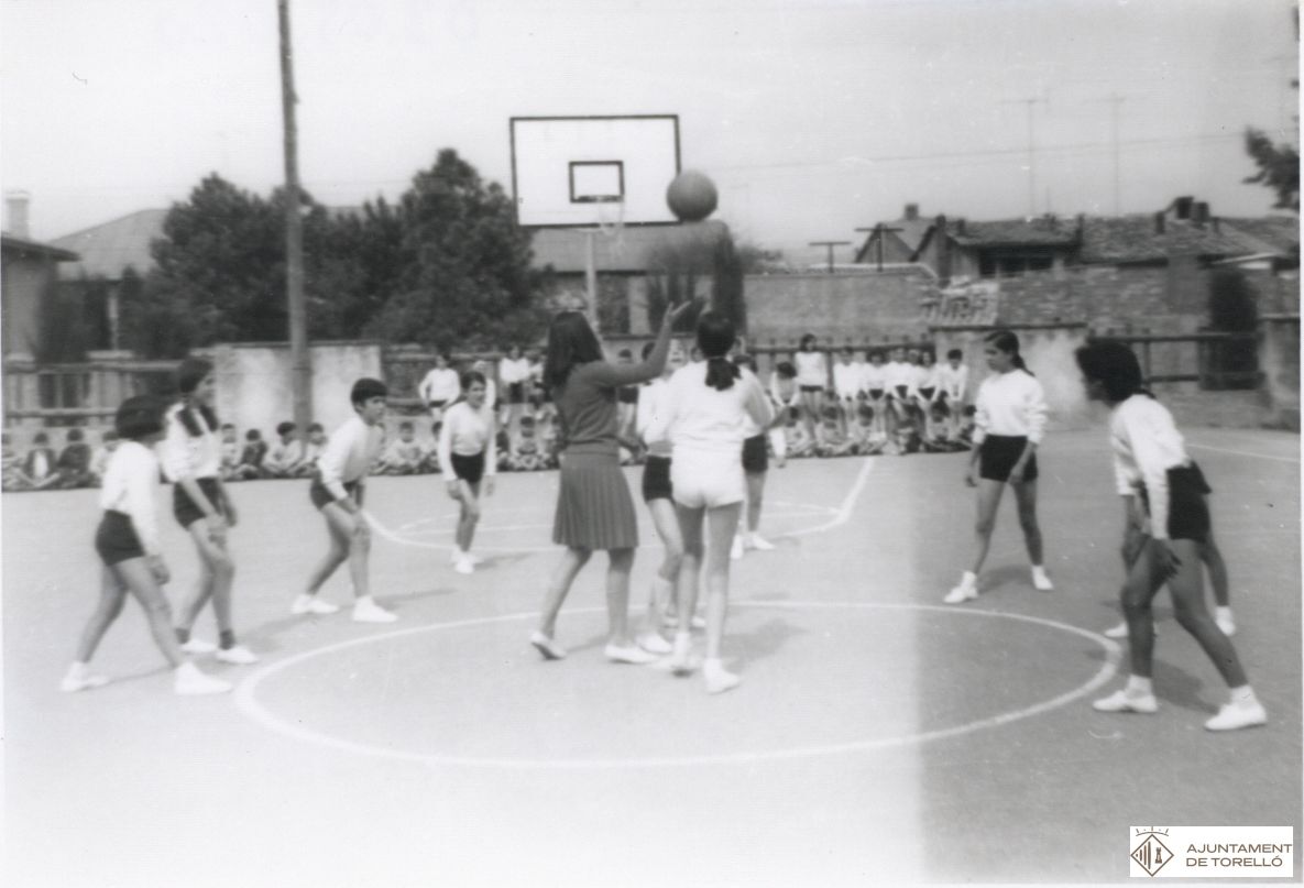 Partit de bàsquet femení al pati de l'escola Dr Fortià Solà