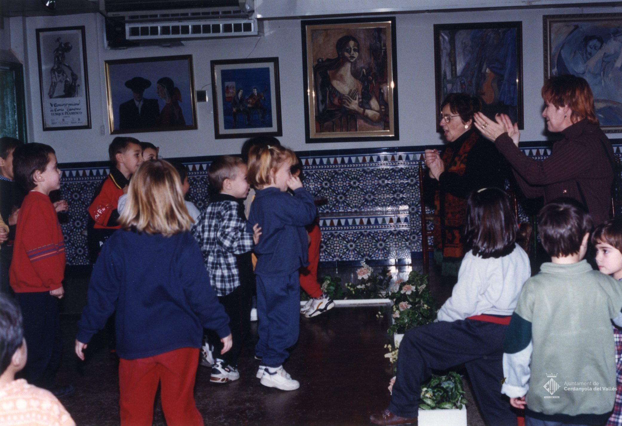 Trobada amb L'alcaldessa Cristinaa Real i la Regidora Marisa Benavides amb els nens per Nadal a l'Ateneu de Cerdanyola any 1998