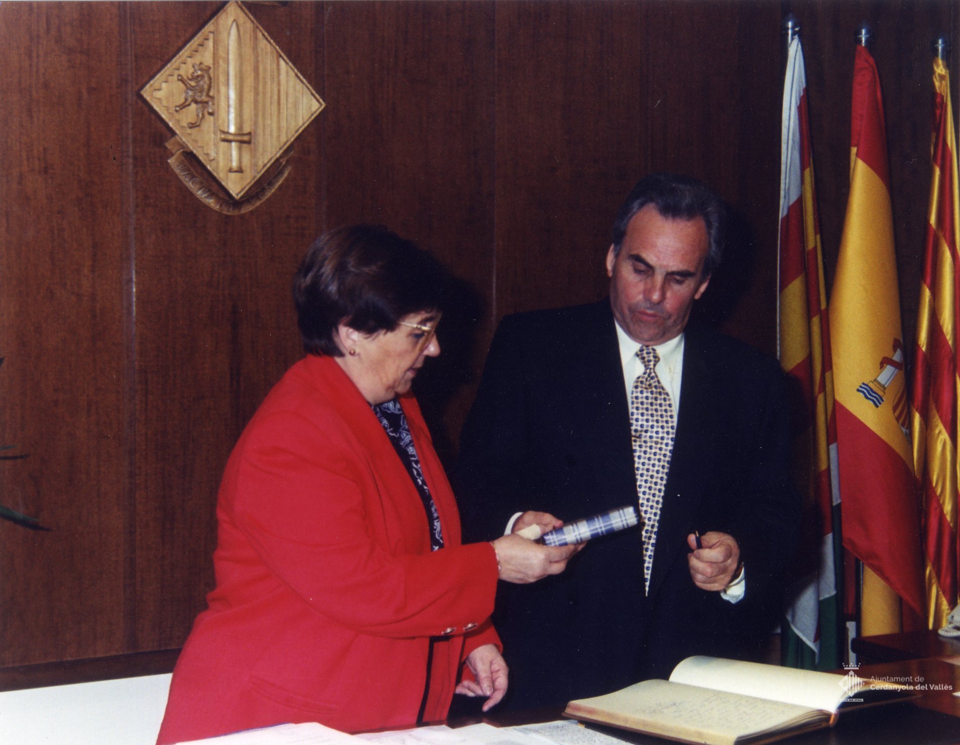Visita oficial i acte de signatura del Llibre d'Honor de l'Ajuntament de Cerdanyola del Vallès de l'Alcalde de Fuente Vaqueros, Francisco Martín García, el març de 1998