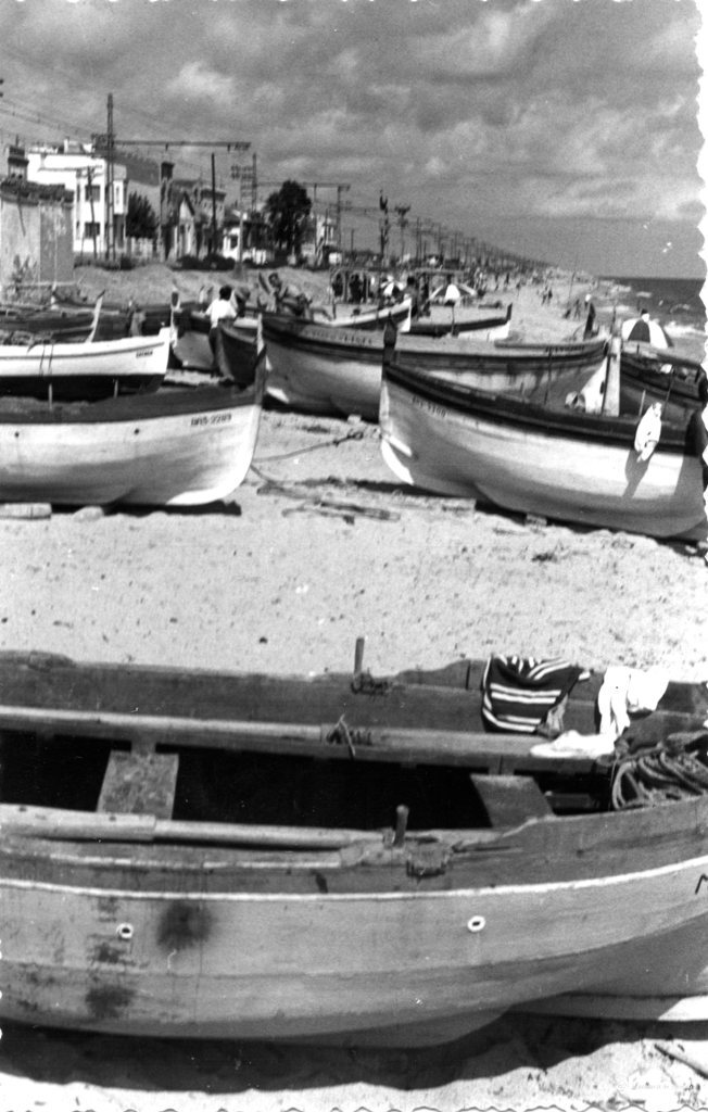 En primer terme, tenim la banda d'una barca i en segon terme les proes d'altres barques.